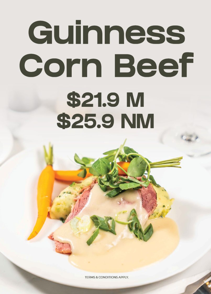 This February, enjoy Grilled Barramundi & Prawns with garlic cream sauce, buttered mash potato and seasoned greens.
